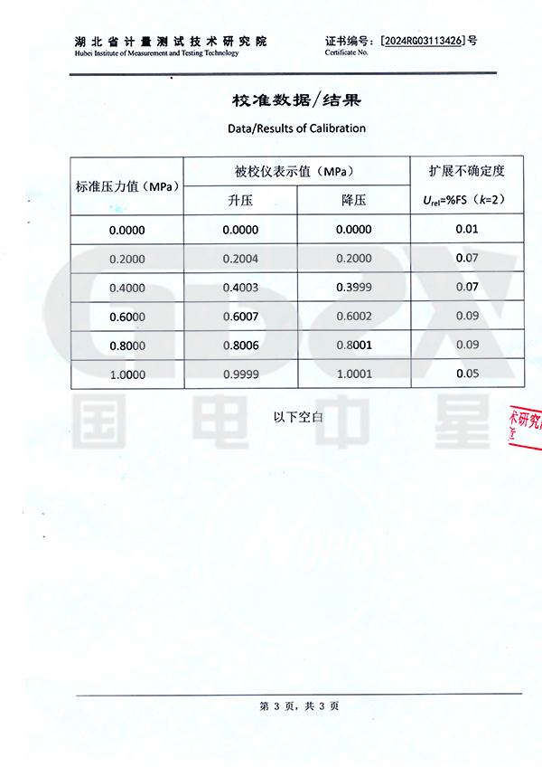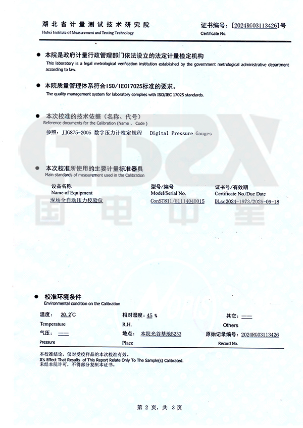 3. 自動完成壓力測量和20℃值轉換,從而完成了壓力、溫度間的動態自動補償。并顯示被測環境溫度下的壓力、20℃時環境溫度下的壓力、環境溫度。徹底解決了SF6氣體密度繼電器現場校驗難的問題。