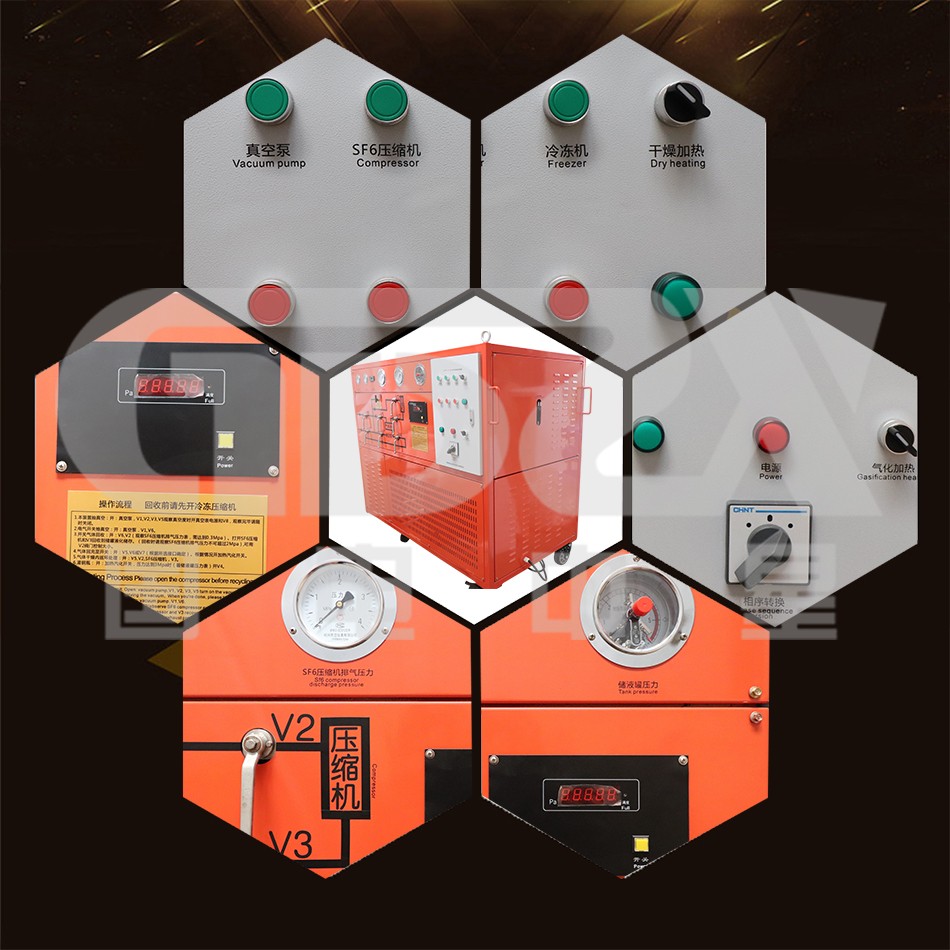 1. 內(nèi)置過濾吸附系統(tǒng),可以吸附SF6氣體中的的雜質(zhì)、水份、分解產(chǎn)物和油份等。
