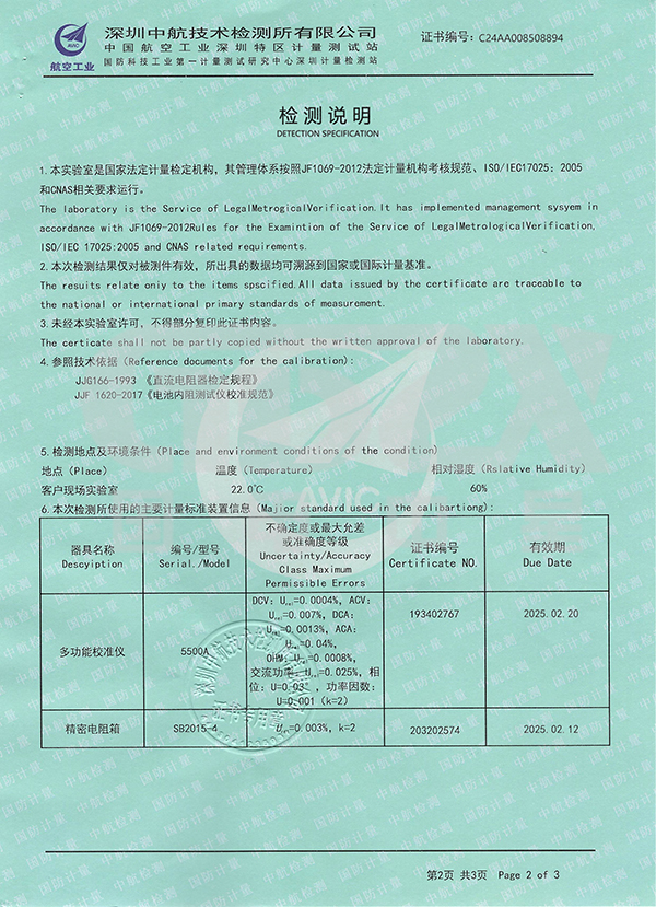 2. 最小測(cè)量分辨率:內(nèi)阻:0.001mΩ;電壓:1mV。
