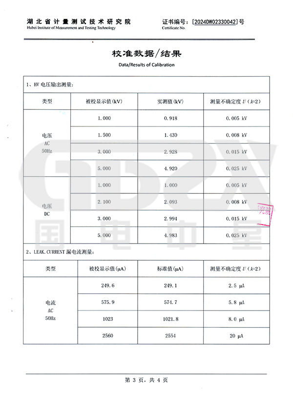 交流電壓輸出 | 范圍:(100 ~ 5000)V ,分辨力:1V,誤差:±(1%×設定值+5V) |