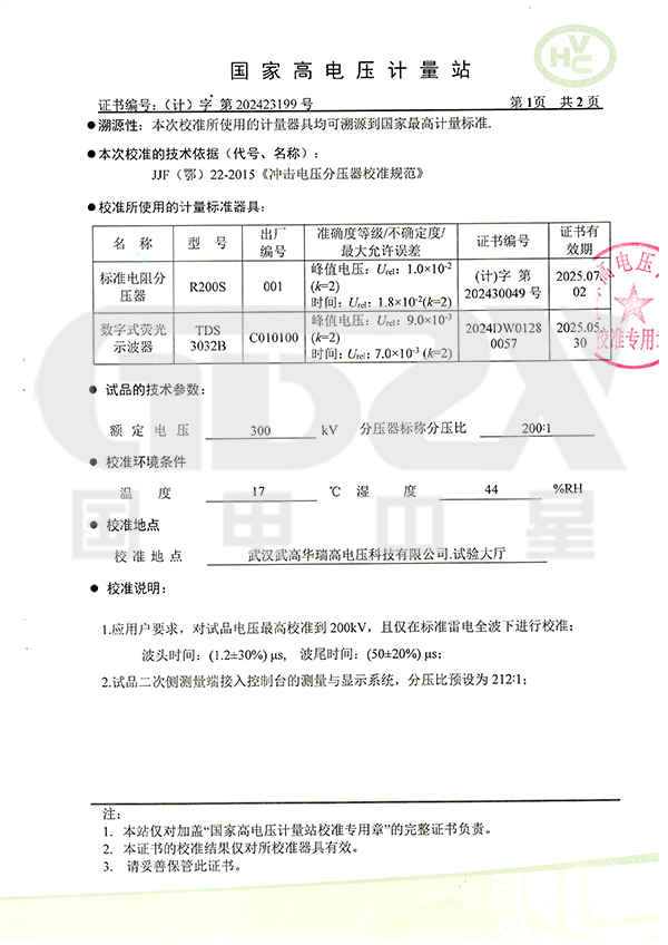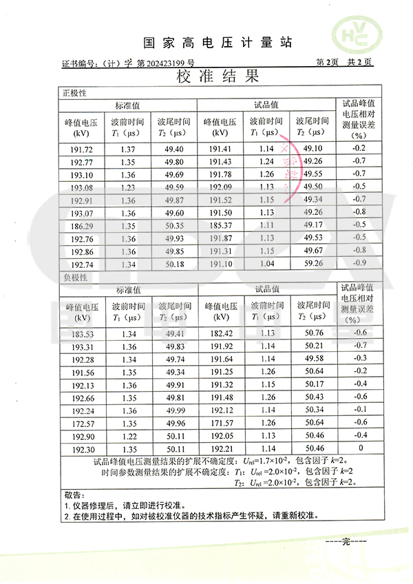 2、沖擊電壓發生器回路電感小,并采取帶阻濾波措施,在大電容負載下仍能產生標準沖擊波,負載能力大。