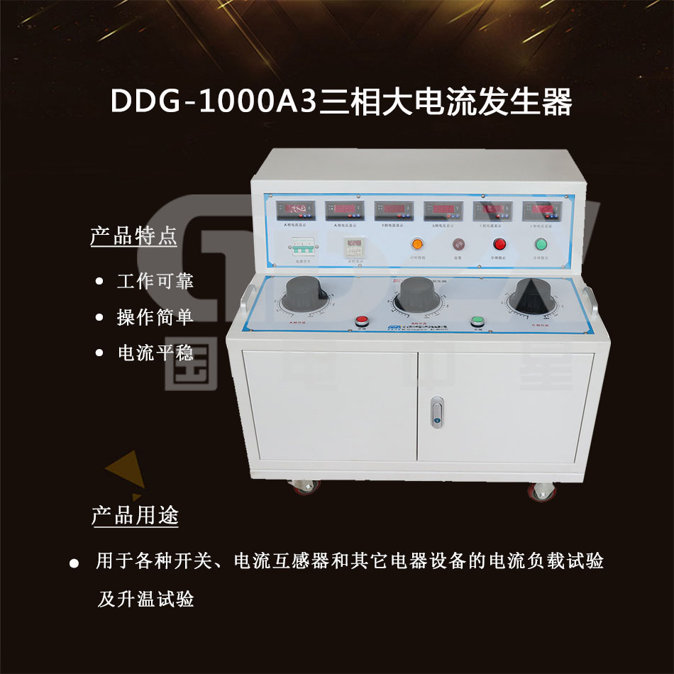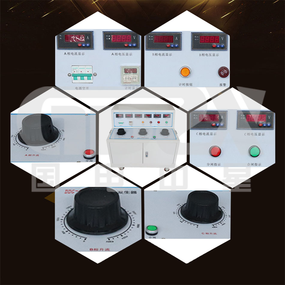 DDG-1000A3三相大電流發生器是為電力部門和工礦企業進行電氣設備試驗而設計制造的專用設備,適用于各種開關、電流互感器和其它電器設備的電流負載試驗及升溫試驗。本產品根據體積、重量的不同采用分體/整體式結構,具有輸出電流無極調整、電流上升平穩、負荷變化范圍大、工作可靠、操作簡便安全等特點,可作為工礦企業進行升流或溫升試驗的電流源設備。