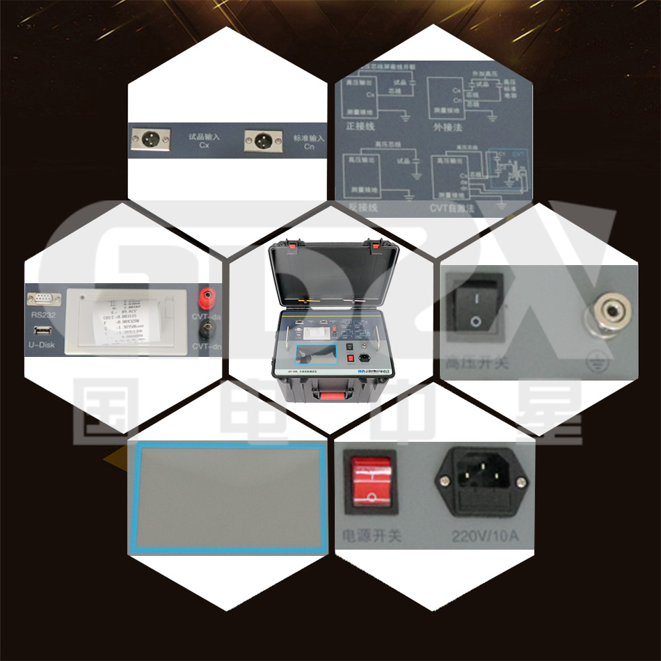 7) 一體化機型,內附標準電容和高壓電源,便于現場測試,減少現場接線。