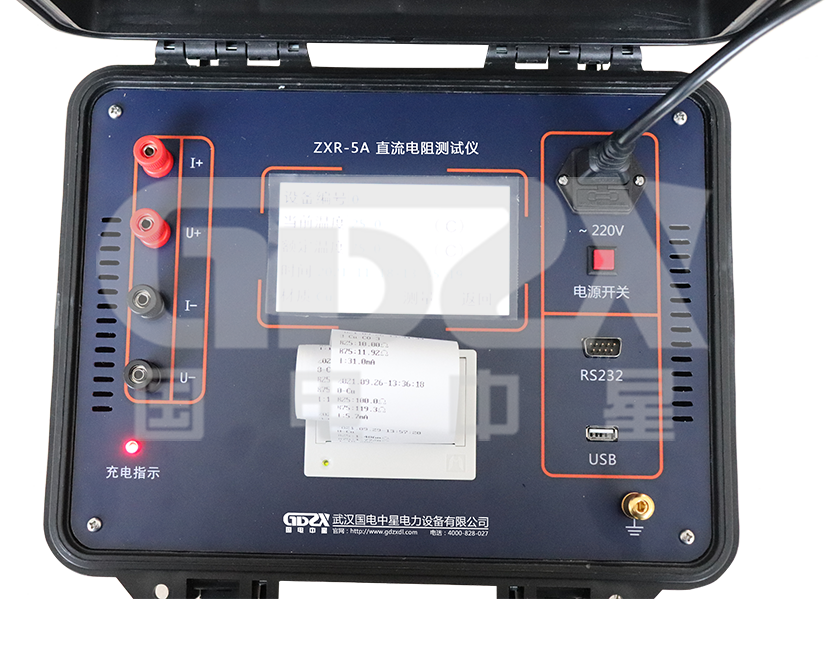 ZXR-5A直流電阻測試儀采用微機控制,大屏幕背光漢字液晶屏顯示,操作簡便、顯示清晰人機交互界面友好,測量過程及儀器工作狀態提示明確充分,不需操作人員記憶過多的規程;采用電流源線性補償技術,測試穩定、測量精度高、速度快,提高了測量效率,減輕了操作人員的工作強度。技術上采用“四端”測量,消除引線電阻與接觸引起的測量誤差。有過壓防護功能,能防反電動勢沖擊。面板式打印機可快速打印測量結果(選用)。體積小、重量輕、攜帶方便。