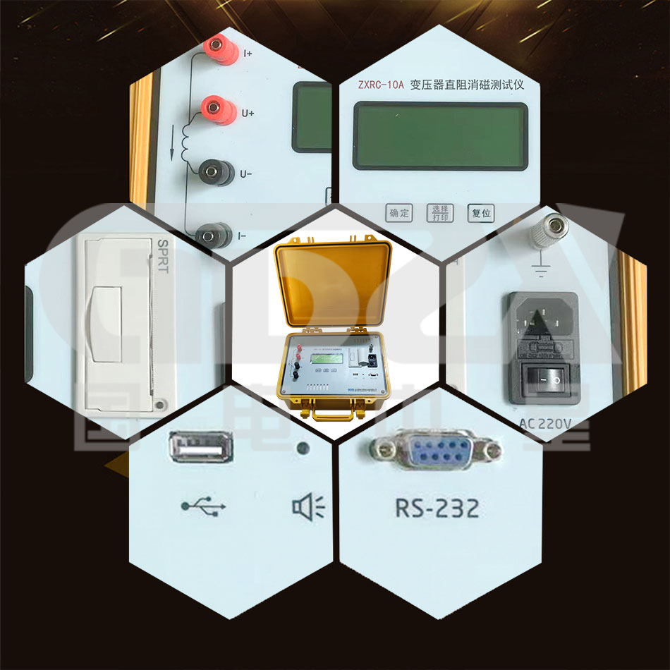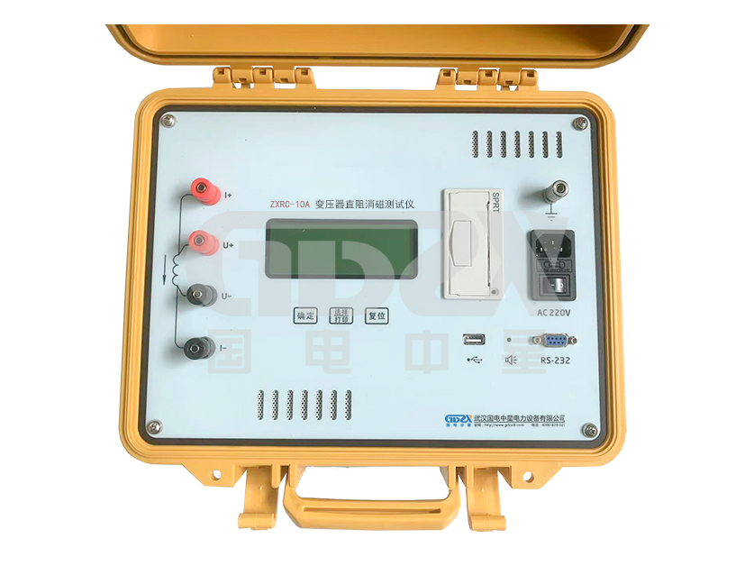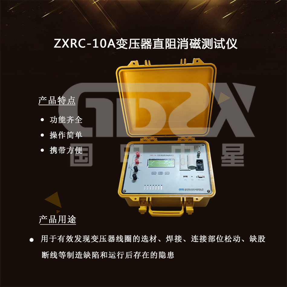 ZXRC-10A變壓器直阻消磁測試儀能有效發現變壓器線圈的選材、焊接、連接部位松動、缺股、斷線等制造缺陷和運行后存在的隱患。是集直阻測試儀和消磁儀為一體的新型測試儀,不僅是測量變壓器、互感器、發電機、電動機直流電阻的快速測試設備,而且具有消磁的功能,對保護電力變壓器免受勵磁涌流沖擊和安全投運有極其重要的作用。