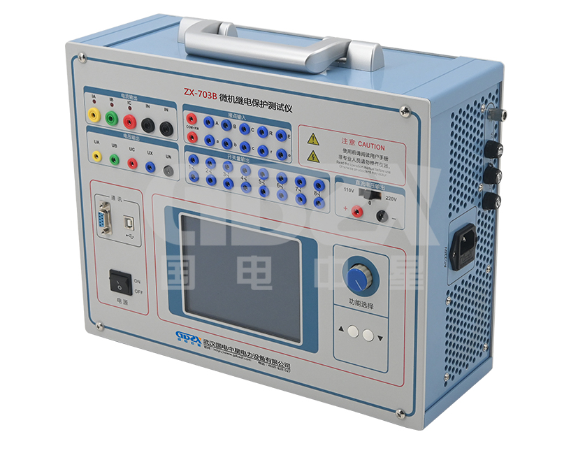 ZX-703B微機繼電保護測試儀可對各類型電壓、電流、頻率、功率、阻抗、諧波、差動、同期等繼電器以手動或自動方式進行測試,可模擬各種故障類型進行距離、零序保護裝置定值校驗和保護裝置的整組試驗。可自動掃描微機和數字型變壓器、發變組差動保護比率制動曲線,是保證電力系統安全可靠運行的一種重要測試工具。