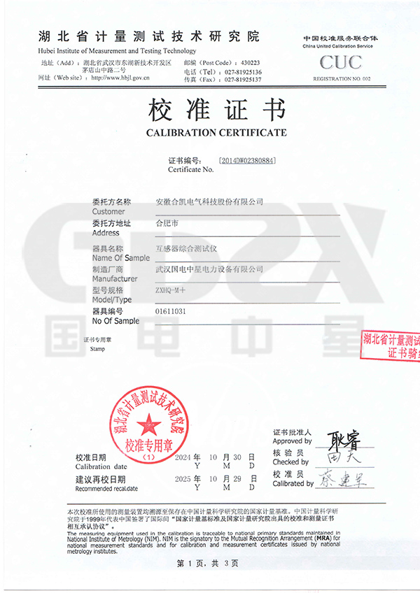 企業產品嚴格按照國際、國家標準及行業規程生產,通過國家、各省級、市級電力研究所、計量中心及電力權威部門的檢測,全面通過ISO9001國際質量管理體系認證、中華人 民共和國制造計量器具許可證、GB/T19001-2008質量管理體系要求、GB/T24001-2004環境管理體系要求、GB/T28001-2011職業健康安全管理體系要求。