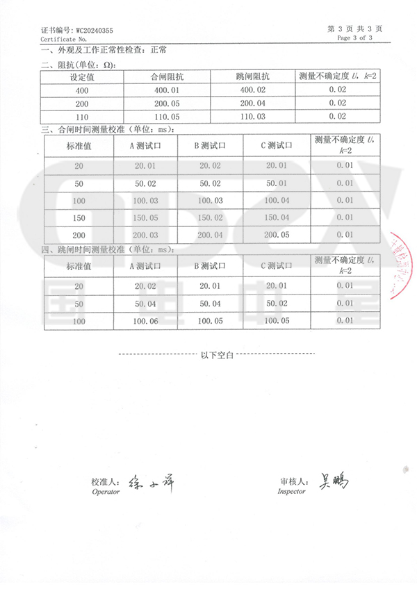 2. 跳合閘操作為電源電壓:DC220V、DC110V