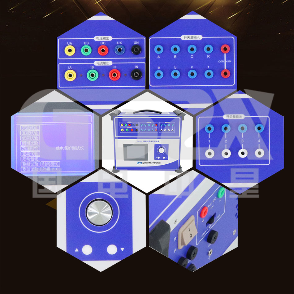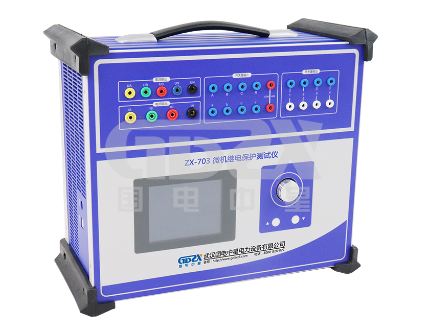 ZX-703微機繼電保護測試儀可對各種繼電器(如電流、電壓、反時限、功率方向、阻抗、差動、低周、同期、頻率、直流、中間、時間等)及微機保護進行檢定,并可模擬各種復雜的瞬時性、轉換性故障進行整組試驗。