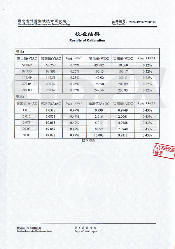 交流電壓 | 0~250V | ±0.5% | 1000W |