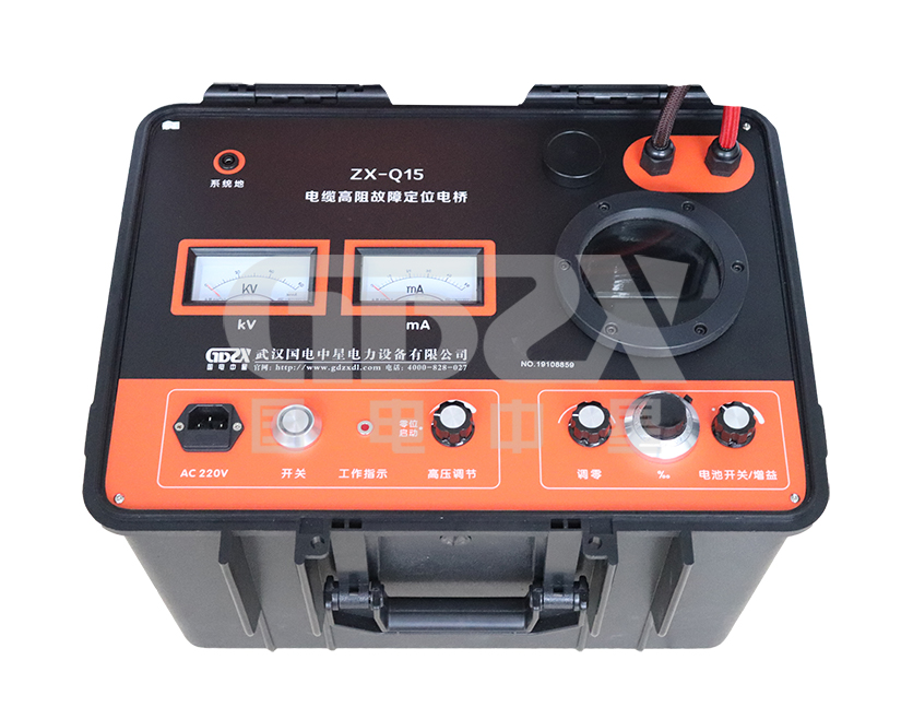 ZX-Q15 電纜高阻故障定位電橋是基于MURRAY電橋原理而設計,適用于敷設后各種電線電纜的擊穿點及沒有擊穿但絕緣電阻值偏低的缺陷點的定位,及高壓電纜外護套故障的定位。當然,也可用于電纜廠內各種線纜的缺陷點定位。