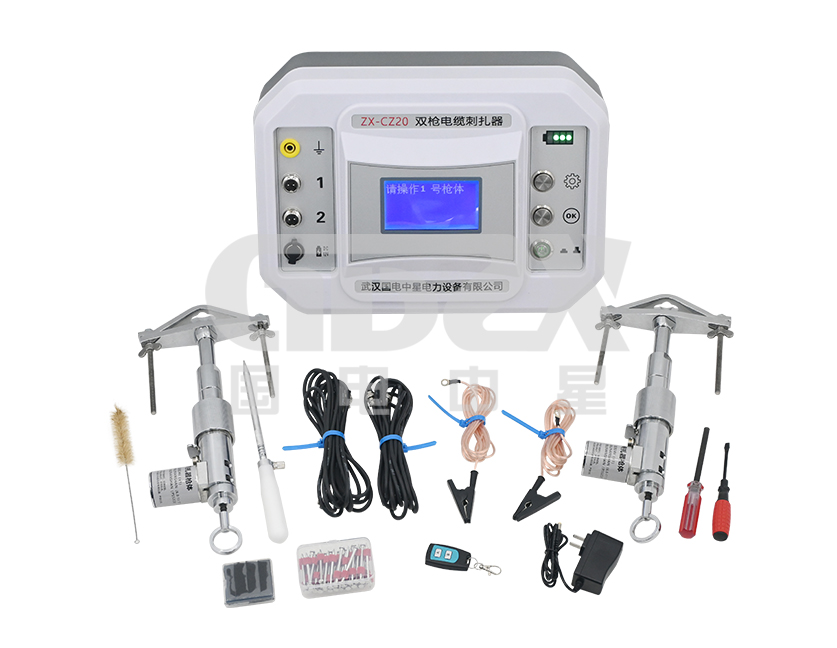 我公司根據(jù)《電業(yè)安全工作規(guī)程(電力線路部分)》及用戶的需求,參照國內(nèi)外先進(jìn)技術(shù),研制出ZX-CZ20雙槍電纜刺扎器,該產(chǎn)品解決了電纜帶電與否的鑒別以及人工刺扎的不便與安全隱患,實(shí)現(xiàn)了絕對(duì)安全的刺扎問題。