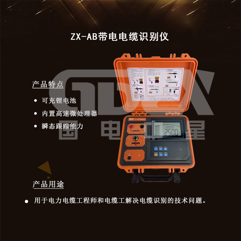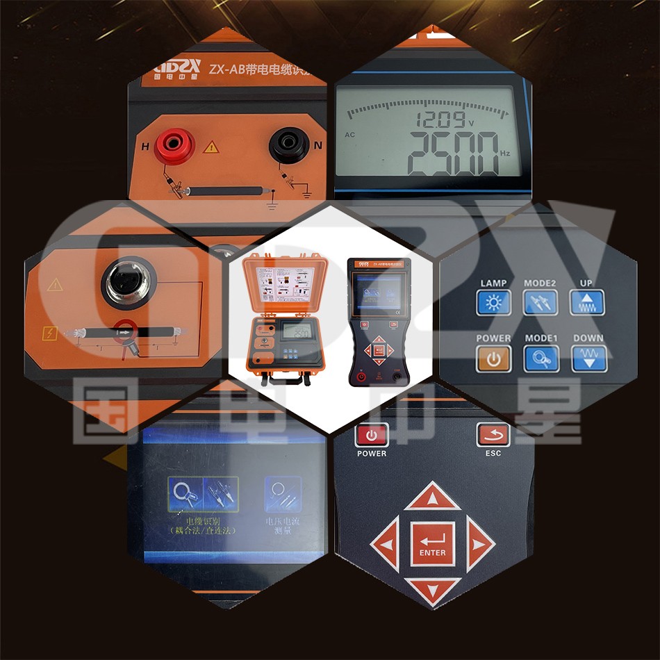 ZX-AB帶電電纜識別儀是為電力電纜工程師和電纜工解決電纜識別的技術問題而設計的。用戶通過儀器從多根電纜中準確識別出其中某一根目標電纜,避免誤鋸帶電電纜而引發嚴重事故。電纜識別是從電纜兩端的操作開始的,必須保證電纜兩端的雙重編號準確無誤,本儀器設計采用了PSK技術,結合精準算法。無論現場工作人員的記憶多么可靠,都不能代替專業儀器的識別。本產品同時具有帶電電纜識別、停電電纜識別、交流電流測試、交流電壓測試功能,由發射機、發射電流鉗、接收機、接收柔性電流鉗等組成。