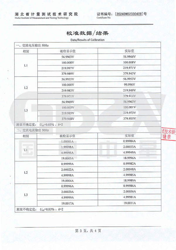 4.三相電壓、電流回路獨立控制,每一相電壓、電流輸出參量可分別調節。