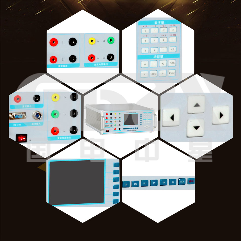 7. 可輸出交直流電壓、電流,配有功率,頻率,相位,功率因數及交直流電壓電流標準。
