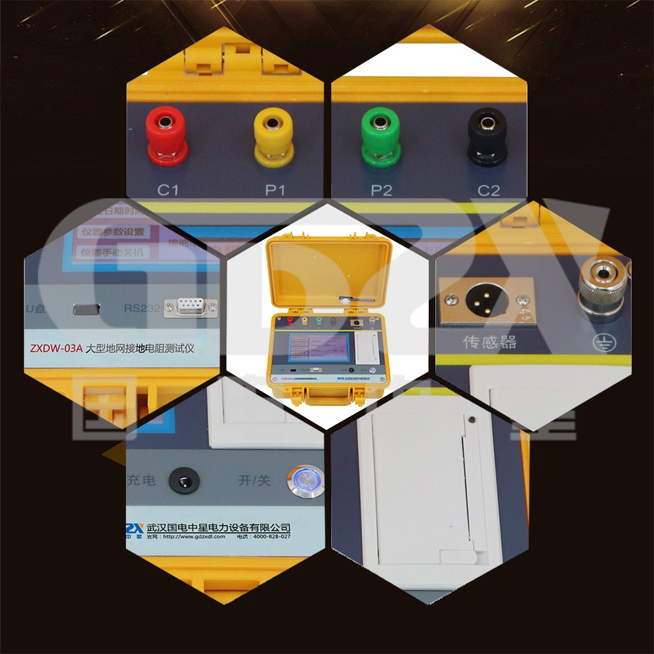 ZXDW-03A大型地網接地電阻測試儀是測量地網接地電阻和接地點之間的接地導通的專用儀器。儀器采用變頻抗干擾技術,不需大電流測量,能在變電站強干擾環境下測得50Hz的準確數據,測量結果由大屏幕液晶顯示,自帶微型打印機可打印輸出。儀器能同時測量接地阻抗和接地電阻,更能真實反映地網的實際特性。