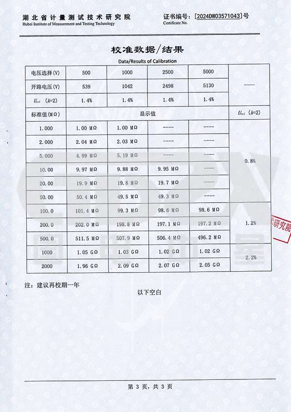 誤差為 20%RDG的范圍 | (50~2000)GW/10kV (50~1000)GW/5kV (20~100)GW/2.5kV (20~100)GW/1kV (10~50)GW/0.5kV (0.0001~50)GW/0.25kV |