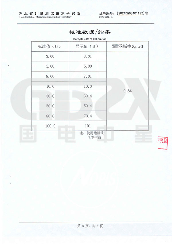 3. 測量范圍廣、分辨率高:量程從0.01Ω~200Ω,分辨率0.01Ω,對0.7Ω以下接地電阻,也能準確測量。