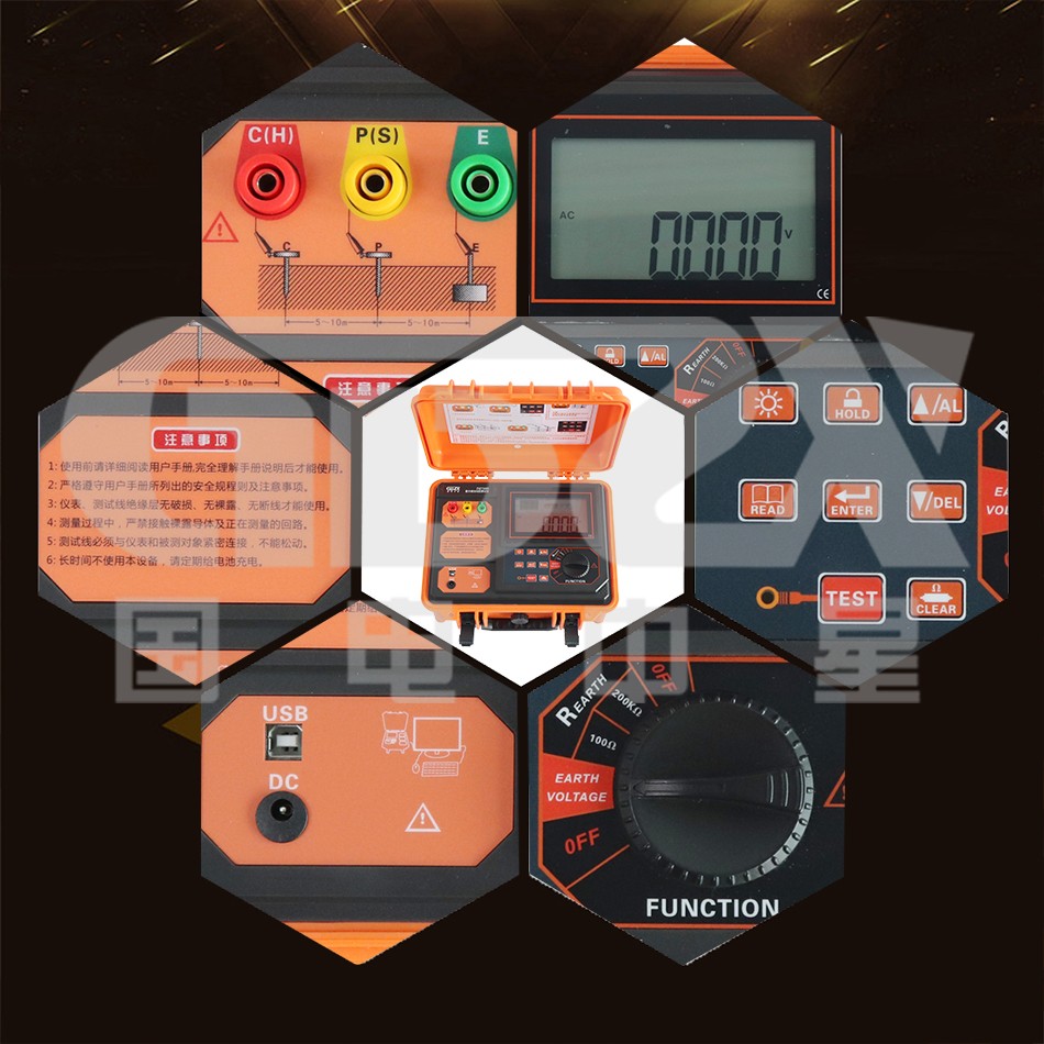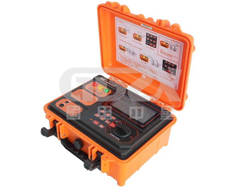 儀器由主機(jī)、測(cè)試線、輔助接地棒、數(shù)據(jù)軟件、通訊線等組成。主機(jī)采用一體化工具箱式設(shè)計(jì),用聚丙烯塑膠作為原料,添加新型復(fù)合填充料一次注塑成形,密度小、重量輕、強(qiáng)度、剛度、硬度、耐磨性、耐熱性、絕緣性能更優(yōu)越,其箱體能承受約200kg的壓力,確保各種環(huán)境測(cè)試的高精度、高穩(wěn)定性和高可靠性。主機(jī)LCD顯示,具有背光、棒圖指示,一目了然,能存儲(chǔ)2000組數(shù)據(jù),通過(guò)數(shù)據(jù)軟件可以實(shí)現(xiàn)歷史數(shù)據(jù)讀取、查閱、保存、報(bào)表、打印等功能。