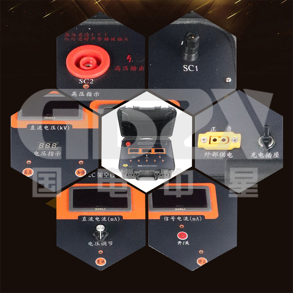 基本原理:“直流高壓開路,交流信號(hào)定位”。“直流高壓開路”,就是向接地故障線路發(fā)送30~15000V直流電壓,利用直流高壓去尋找接地點(diǎn),找到接地點(diǎn)并再次擊穿后,直流電壓降為30V,維持30mA恒流。