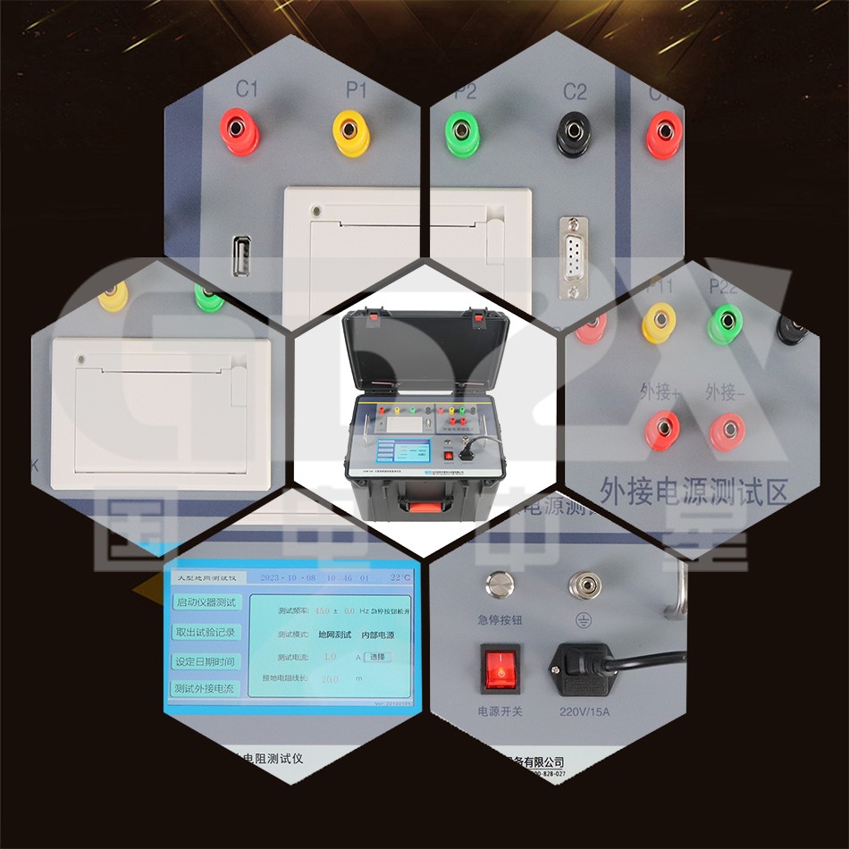 4. 功能強(qiáng)大。可測量電流樁,電壓樁,地網(wǎng)阻抗、接地電阻,接地導(dǎo)通、土壤電阻率等。